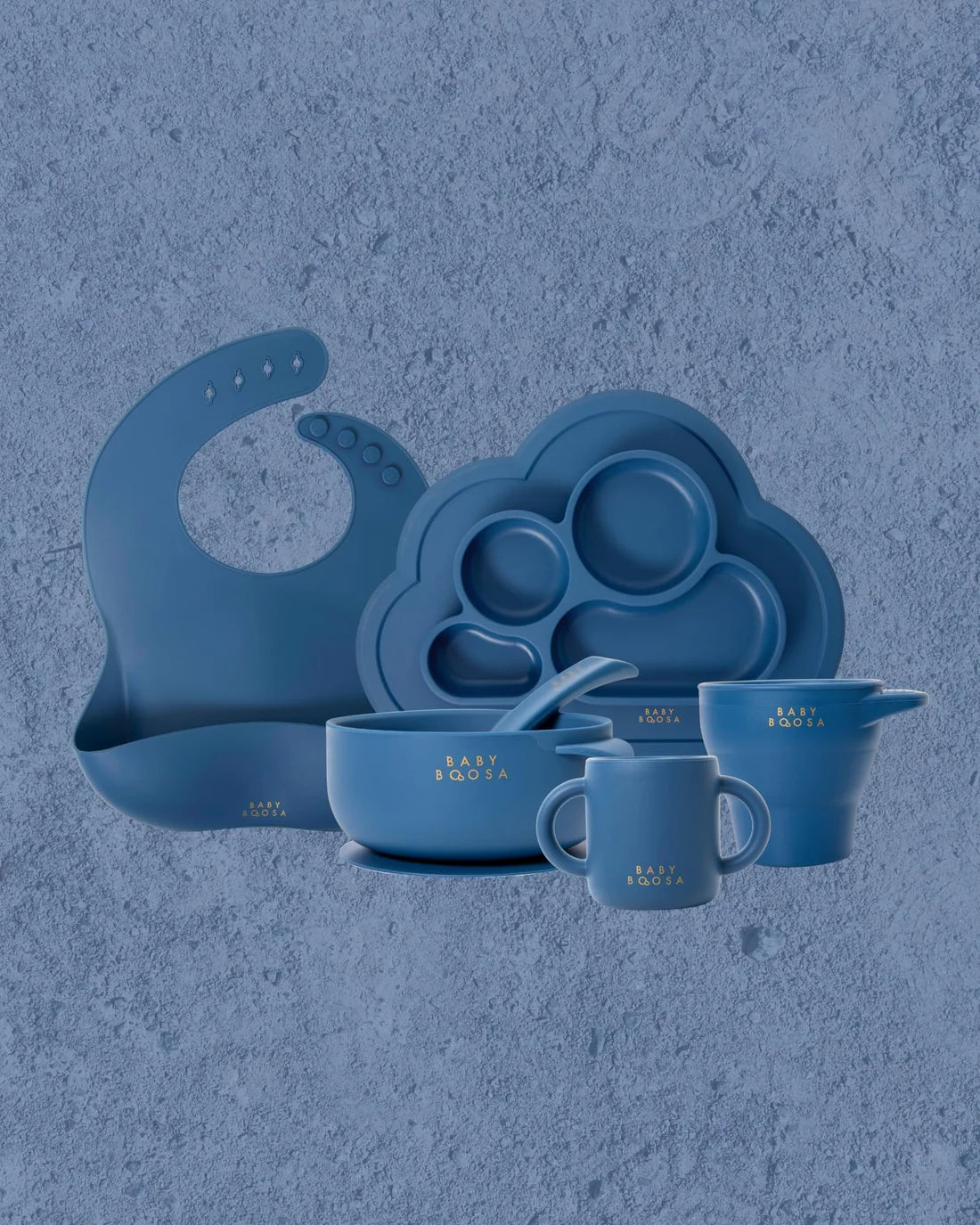 Weaning Cloud Plate Mat | Grippy Suction | Non-slip | Catch-food | Side scoops | Easy clean (Riviera Blue)